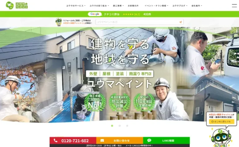 株式会社ユウマペイントは外壁塗装業界で高い信頼と豊富な実績を持つ専門業者です。塗装の耐久性に重点を置き、日本ウエザリングテストセンターでの曝露実験を通じて実際の耐久年数を検証しています。