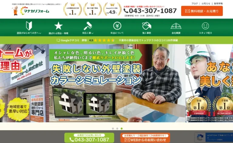マナカリフォーム株式会社は優れた実績を持つリフォーム会社です。2020年に大手塗料メーカーのアステックペイントで全国・千葉県ともに施工実績1位を獲得しました。2022年には千葉県施工実績1位とお客様満足度全国1位も達成しています。施工実績は500棟を超えています。