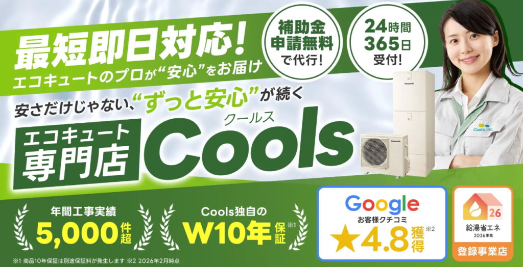 | 4位 | エコキュート専門店 Cools | 26万5,800円+工事費・廃棄処分費 |