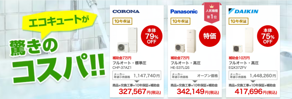 | 5位 | エコキュート専門店「エコ救」 | 59万7,000円(コロナ CHP-46AY5V※ CHP-46AZ1の旧モデル) |