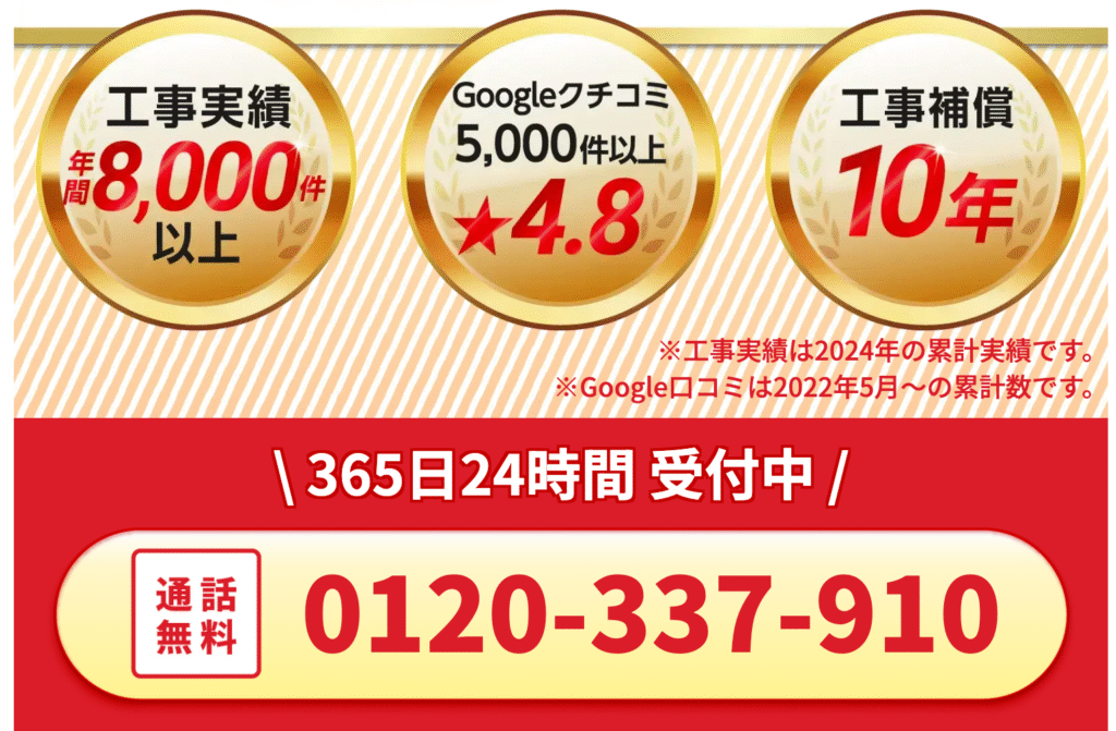 - 年間8,000件以上の施工実績で安心できる技術力