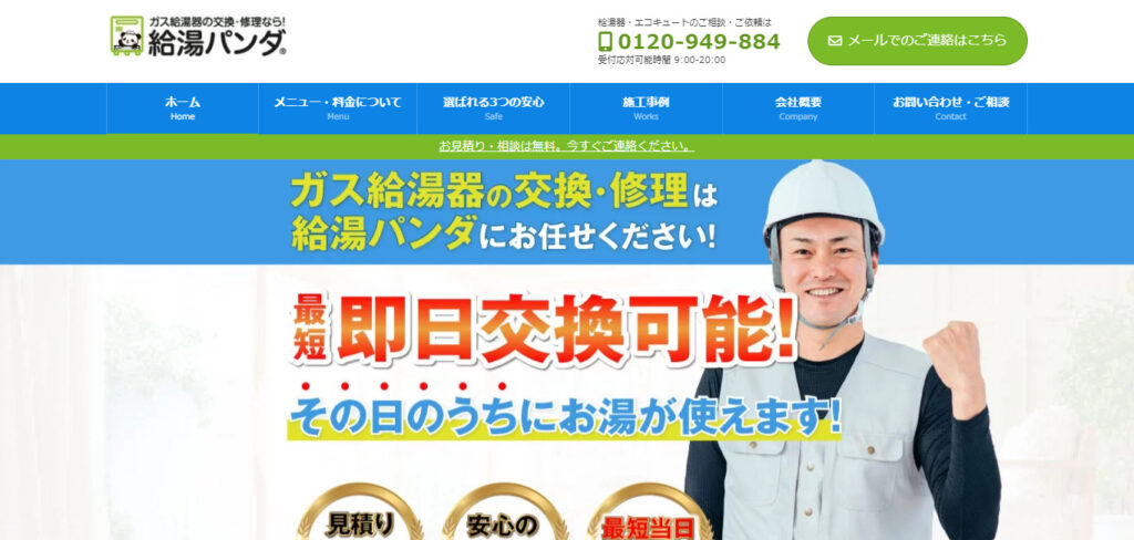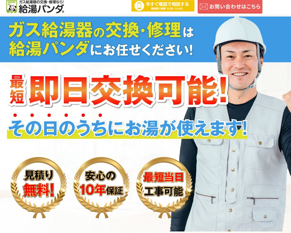 給湯器が故障した場合、迅速かつ確実な対応をしてくれる業者選びは重要です。「給湯パンダ」は、給湯器の交換・修理を専門とする業者として、年中無休で急なトラブルに対応しています。最短当日の工事実施、無料の現地調査・見積もり、10年間の長期保証など、ユーザーにとって安心できるサービスが特徴です。