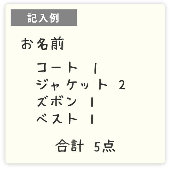 忘れずに「お預かり表」を記入し、段ボールに同封します。A4用紙にメモ書き程度で問題ありません。