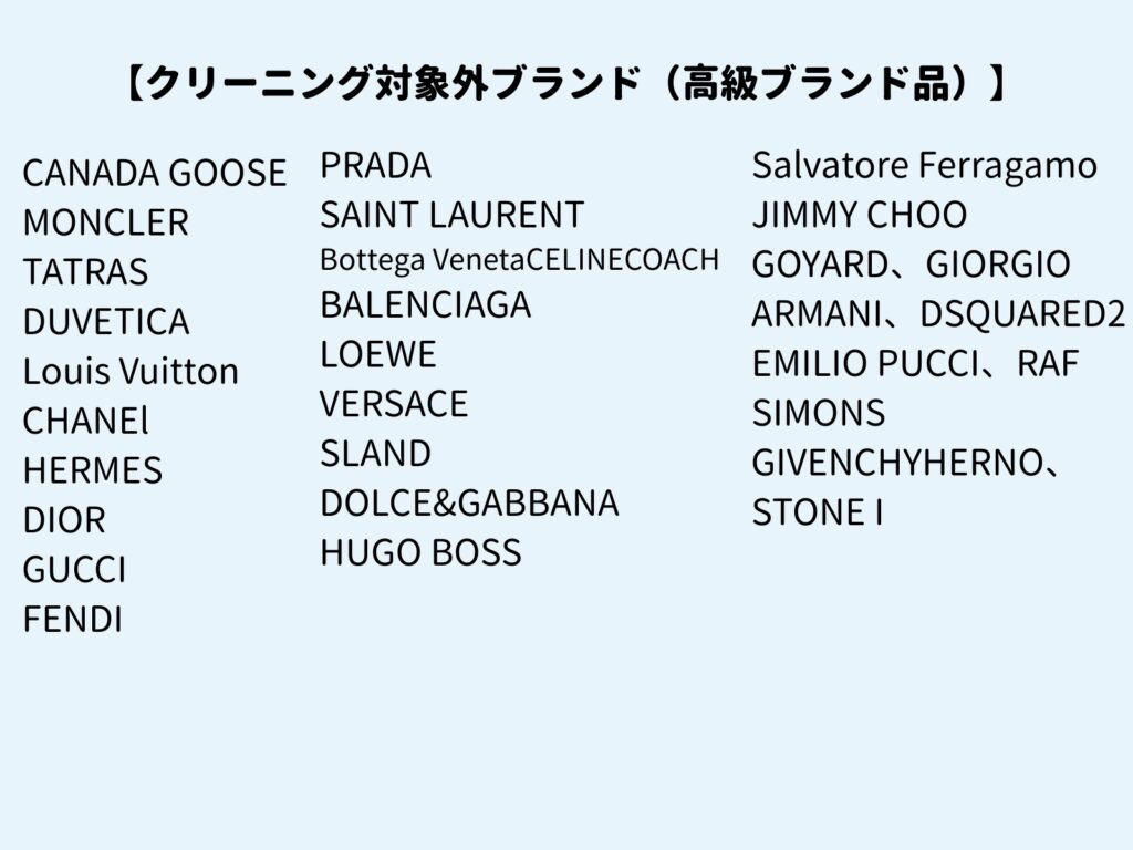 また、ブランド品や革素材など、クリーニングできない品目も比較的多め。「何でも出せるわけじゃない」という点は覚えておいた方が安心です。
