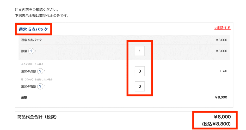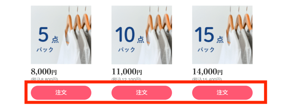表示画面で「注文」をクリックし、好きなパックを選択してください。