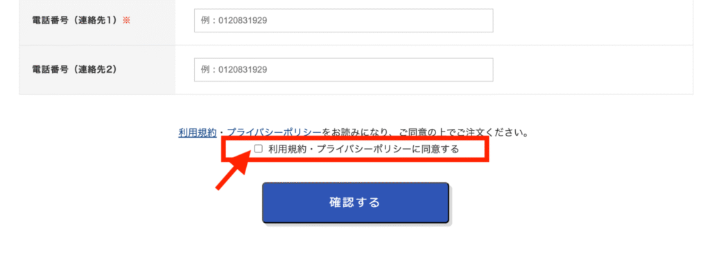 最後に「利用規約・プライバシーポリシーに同意する」にチェックを入れるのを忘れないようにしましょう。