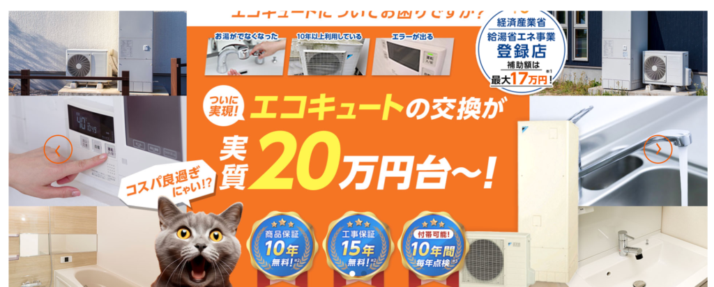 | 5 | エコキュート交換修理専門「きゅっと」 | 30万2,000円〜 |